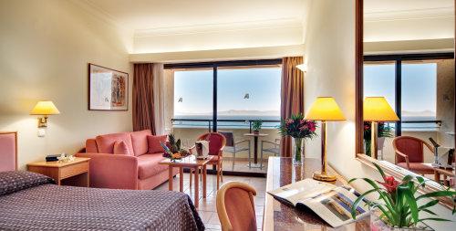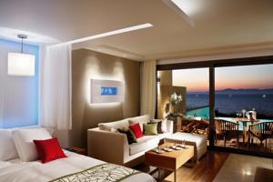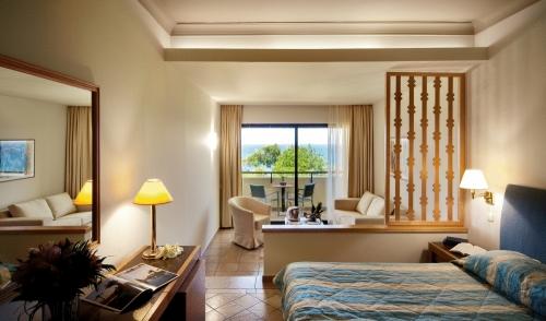 С балконов номеров открывается вид на залив Иксии или лес на склоне холма. Все номера оснащены кондиционером, сейфом, спутниковым телевидением и мини-баром. Тапочки и халаты предоставляются бесплатно.