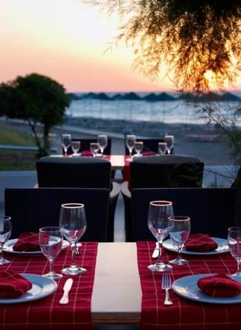 В ресторане Dionysos сервируется завтрак, обед и ужин, а в таверне Artemis можно заказать блюда греческой кухни. В отеле также есть ресторан, в котором блюда подаются по меню. У бассейна отеля, пляжа и главного здания отеля Blue Bay работают 5 баров.