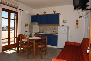 Все апартаменты оснащены мини-кухней с плитой, небольшим холодильником, шкафом для хранения кухонной утвари и комфортабельным обеденным столом на 4 человек.