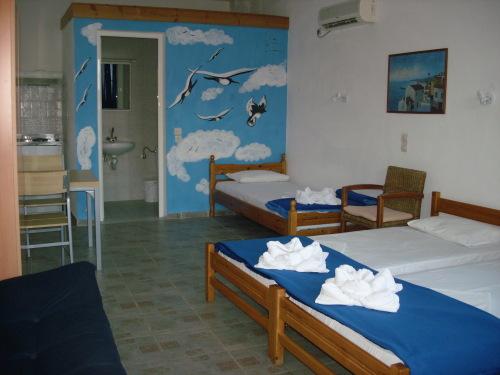 Номера комплекса номеров-студио Azalea View Skiathos оформлены в ярких тонах и украшены настенной живописью. Они оборудованы кондиционером, телевизором, а также хорошо оборудованной мини-кухней с холодильником и плитой. В некоторых номерах имеется микроволновая печь.