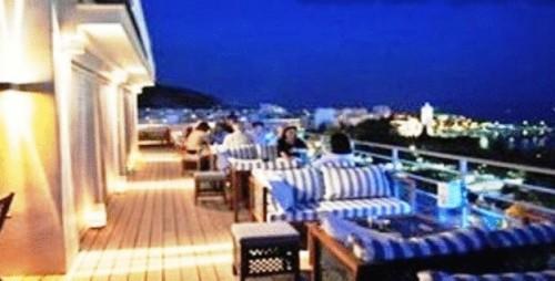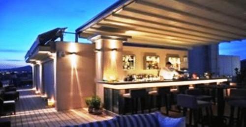 Из бара на крыше открывается живописный вид на гору Пелион, залив Пагаситикос и город Волос.