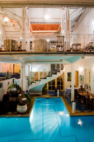 Гости могут поплавать в бассейне и затем зайти в бистро-ресторан, где подают закуски и салаты. В дневное и вечернее время в баре отеля можно заказать прохладительные напитки.