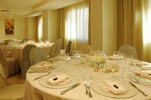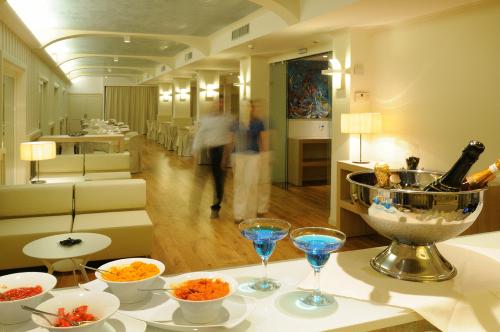 Ресторан сервирует блюда сардинской и интернациональной кухни. В баре Skybar Blau на верхнем этаже можно заказать напитки, воспользоваться бесплатным Wi-Fi и полюбоваться панорамным видом. Компьютером с доступом в Интернет в бизнес-центре отеля можно бесплатно пользоваться в течение первых 15 минут.