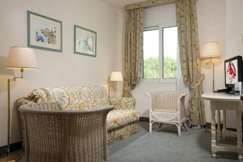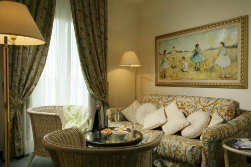 Номера оформлены в классическом стиле, оснащены спутниковым телевидением с каналами Sky. Ванная комната укомплектована феном и туалетными принадлежностями, а частная терраса – столами и стульями.