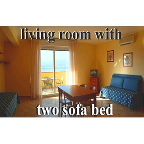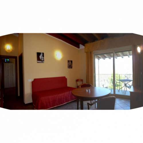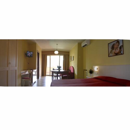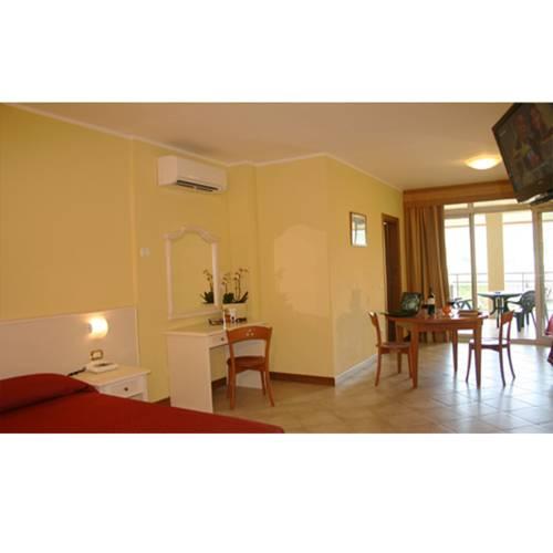 Просторные комфортабельные номера отеля Миралаго оснащены своими собственными балконами и спутниковым телевидением. Внизу расположен ТВ-зал.