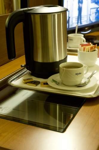 На завтрак в меню входят пирожные, хлеб и свежие фрукты. В стильном баре отеля можно заказать напитки.