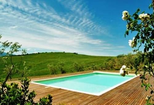 Бассейн оборудован шезлонгами и зонтиками. Из него открывается вид на окружающие холмы, оливковые рощи и виноградники.