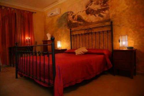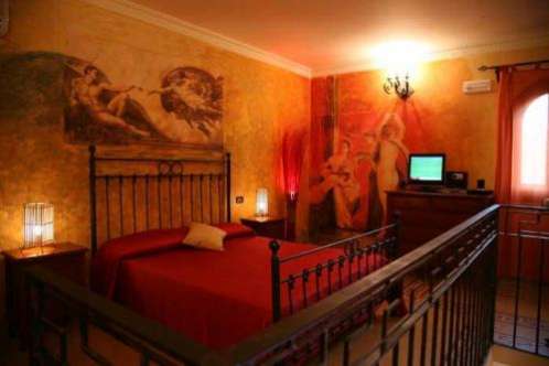 В номерах имеется спутниковое телевидение, мини-бар и отдельная ванная комната с феном. В номерах, оформленных в теплых тонах, имеются кованые кровати и деревянная мебель. На стенах некоторых номеров есть фрески.
