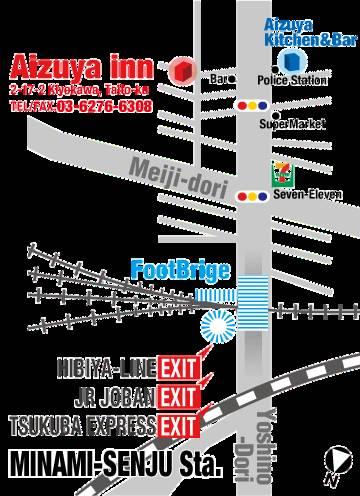 С расположенной рядом станции метро Minami-Senju можно напрямую добраться до кварталов Уэно и Акихабара менее чем за 10 минут. Расстояние до храма Сенсо-дзи и ворот Каминаримон составляет 2 км. Помимо этого, в гостинице предоставляется прокат велосипедов.