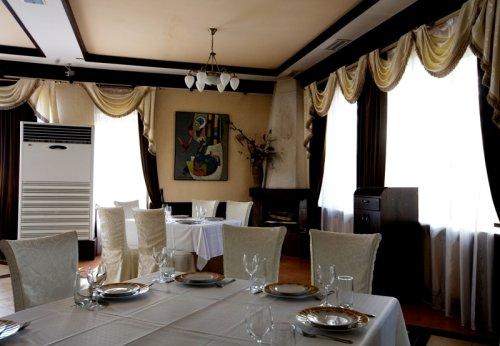 По утрам для гостей "А-Клуба" сервируется континентальный завтрак. Также здесь вы сможете заказать разнообразные блюда европейской и казахской кухни. Блюда подаются в элегантном ресторане Akkumys, просторном обеденном зале или пабе, оформленном в тропической тематике.