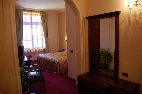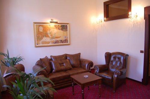 В интерьере вестибюля доминируют красные кресла и элегантные люстры. Здесь можно приятно расположиться с книгой. Гости могут заказать напитки в баре отеля, к которому примыкает танцпол.