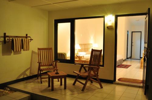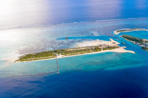 Из просторных номеров курортного отеля Island Fun открывается вид на океан или атоллы. В номерах гостей ожидают большие гостиные уголки и отдельные ванные комнаты с горячим душем и удобствами.