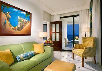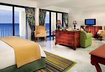 Курорт CasaMagna Cancun Marriott предлагает своим гостям просторные номера, где есть одеяла из гусиного пуха, отдельный балкон и телевизор с плоским экраном.