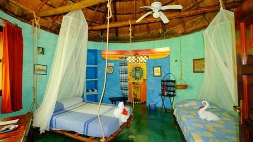 Отель Dos Ceibas Posada Ecologica расположен в окружении тропических садов, где растут 2 дерева Сейба, которые считались священными у древних индейцев Майя. В отеле организуют уроки священного танца, медитации и церемонии полнолуния Майя.