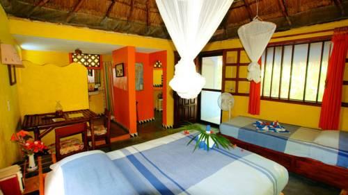 Все бунгало с соломенной крышей оборудованы потолочным вентилятором и ванной комнатой, а из окон открывается вид на сад. Для электроснабжения ярко оформленных бунгало используются солнечные батареи и энергия ветра. Они декорированы в традиционном стиле и оснащены москитной сеткой.