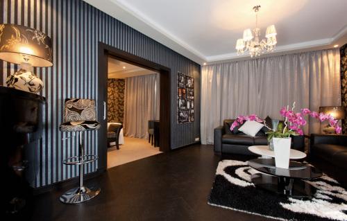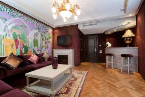 Для оформления каждого люкса с кондиционером в спа-отеле Art Palace использовались образы знаменитостей или международных кумиров. Кроме того, номера отеля оборудованы кофемашиной Nespresso, DVD-плеером, док-станцией для iPod и мини-баром. В некоторых люксах имеется отдельная терраса и терапевтическая ванна.