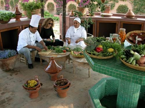 Гостям отеля подаётся континентальный завтрак. После завтрака вас будут ждать на кулинарных занятиях, которые проводятся на кухне на свежем воздухе. В баре гостям предлагается широкий выбор аперитивов. В ресторане с террасами можно заказать блюда марокканской кухни.