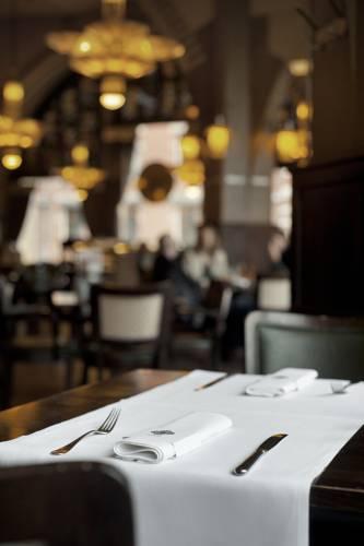 Гости могут насладиться блюдами интернациональной кухни в непринужденной обстановке кафе Americain с восстановленным сводчатым потолком. Летом гости могут расслабиться на тихой террасе с видом на улицу. В уютном баре предлагаются коктейли. После обеда можно заказать полдник с чаем.