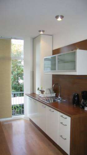 Апартаменты с деревянными полами оформлены в светлых тонах и обставлены изящной мебелью. Также в вашем распоряжении кухня с газовой плитой, кухонными принадлежностями и прилегающей обеденной зоной.