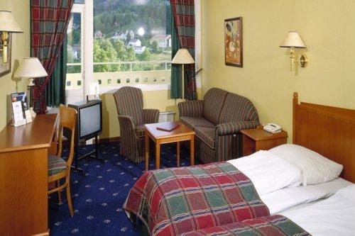Номера отеля Kviknes располагаются в современном крыле здания, выстроенного в 60-х годах. В каждом номере есть отдельный гостиный уголок, письменный стол и кабельное телевидение. Во многих номерах имеются балконы с видом на фьорд.