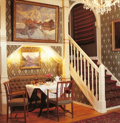 В отеле Kviknes гости могут любоваться историческими произведениями искусства и антиквариатом. В ресторане отеля подаются блюда интернациональной кухни, есть погреб с хорошим выбором вин. Гости могут насладиться видами на фьорд из столовой и террасы.