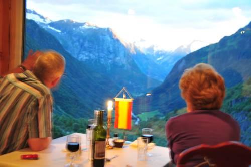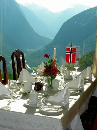 В ресторане с уютным камином подают традиционные норвежские блюда. Также имеется гостиная, где можно отдохнуть.