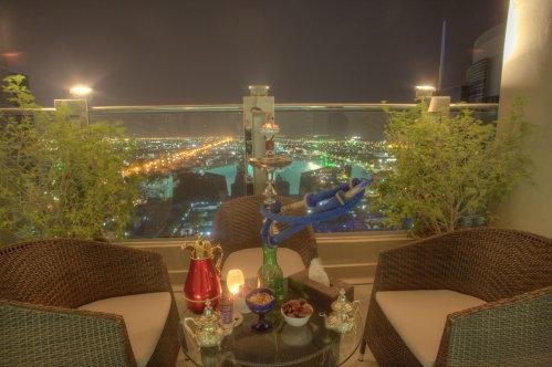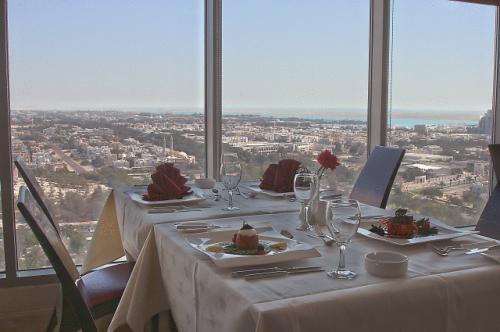 В ресторане Horizon производится обслуживание по меню. После ужина гости могут отдохнуть с кальяном в кафе у бассейна и полюбоваться ночным видом на горизонт Абу-Даби. В баре Blue Line играет живая музыка.