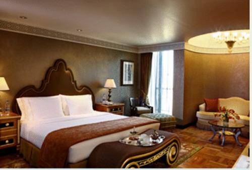 Роскошные номера курортного отеля Sheraton Abu Dhabi располагают отделанной мрамором ванной комнатой и собственным балконом с видом на город или залив.