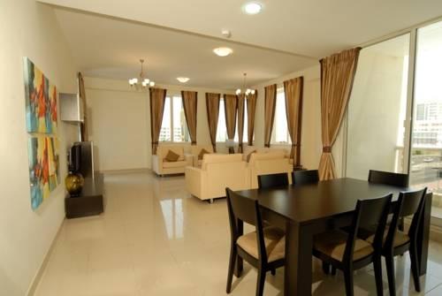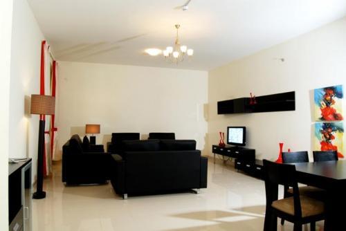 Современные апартаменты оформлены богатыми тканями. В апартаментах есть мягкие кровати и большая гостиная с диванами и телевизором с плоским экраном. К услугам гостей также кухня, столовая мебель и балкон.