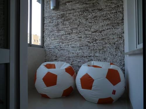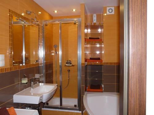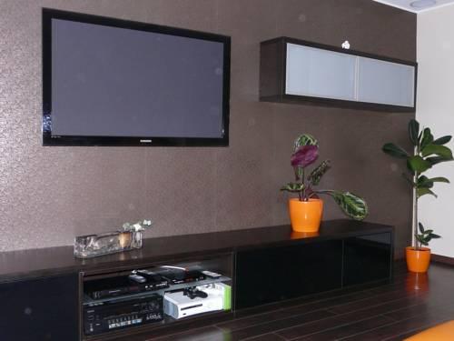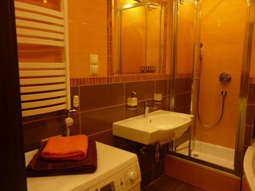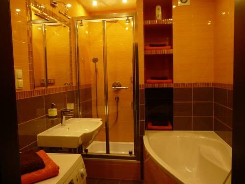 Апартаменты оформлены в современном стиле и включают такие яркие элементы, как большой оранжевый диван. В ванной комнате установлен душ, небольшая ванна, а также стиральная машина. Кроме этого, к услугам гостей телевизор с плоским экраном.