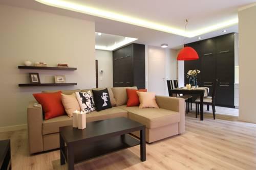 Апартаменты Szafarnia Imperial отличаются стильным и современным интерьером. В распоряжении гостей просторный гостиный уголок с диваном-кроватью, а также мини-кухня, оборудованная электрическим чайником и холодильником. Собственная ванная комната оснащена душем.