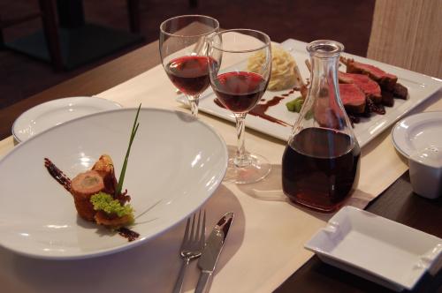 Ресторан отеля специализируется на традиционной польской и международной кухне. Обслуживание номеров предусматривает горячие блюда и закуски круглосуточно 7 дней в неделю. В баре отеля можно заказать широкий выбор кофе и напитков.