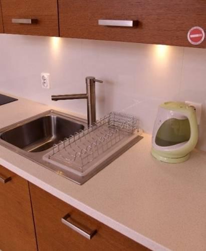 Мини-кухни располагают всеми необходимыми кухонными принадлежностями, электрочайником, микроволновой печью и холодильником. Кроме того, они оборудованы плитой и духовкой. Другими словами, здесь есть все, что нужно для приготовления пищи.