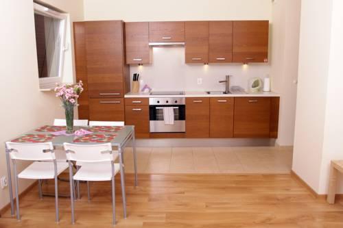 Светлые апартаменты отеля SleepCity оформлены в современном стиле. Все они оснащены DVD-плеером, стиральной машиной и гостиным уголком. Ванные комнаты оборудованы ванной и укомплектованы феном.