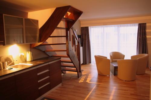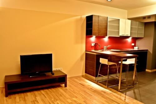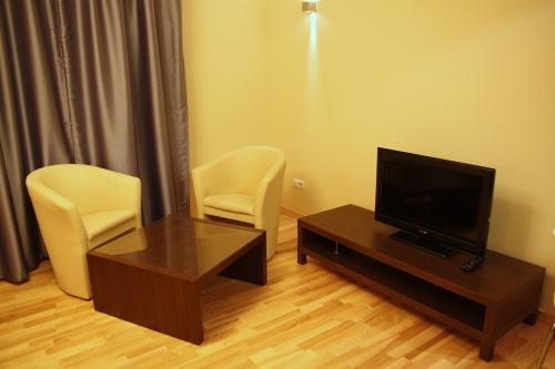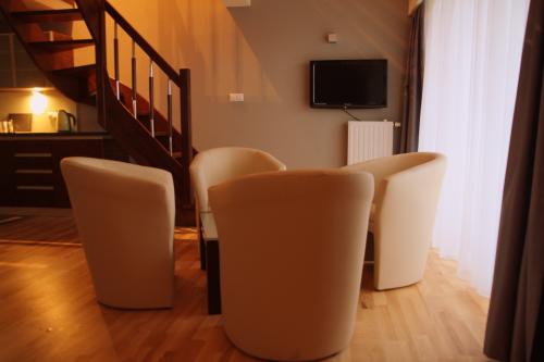 В апартаментах имеется гостиная открытой планировки и обеденная зона с мини-кухней. Все они оборудованы бесплатным доступом в Интернет.
