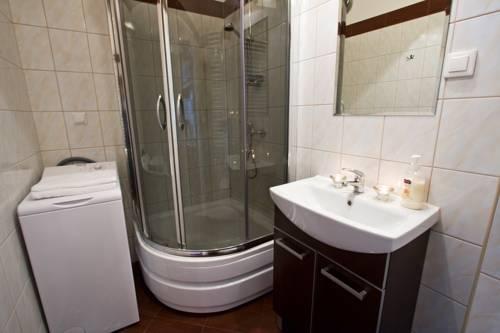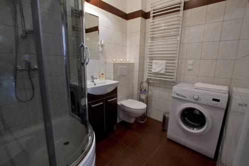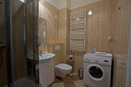 В ванной комнате апартаментов постелен пол с подогревом, установлена стиральная машина и душевая кабина, а также имеются фен и халаты. Также есть пылесос.