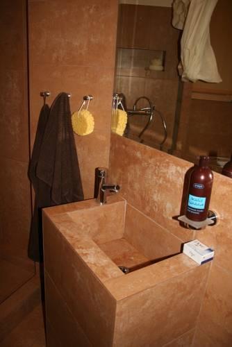 Гости могут расслабиться в гостином уголке и посмотреть телевизор. Апартаменты обставлены деревянной мебелью и украшены керамическими фигурками.