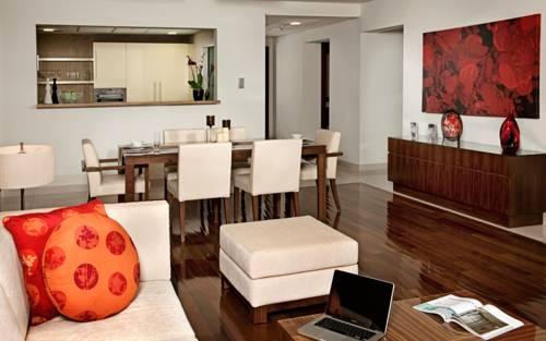 Пятизвездочный комплекс Fraser Suites располагает видом на порт и Индийский океан. В номерах-студио и апартаментах имеется гостиный уголок, телевизор с плоским экраном и док-станция для iPod, а также мини-кухня с обеденной зоной. В ванной комнате предлагаются роскошные туалетно-косметические принадлежности и фен.