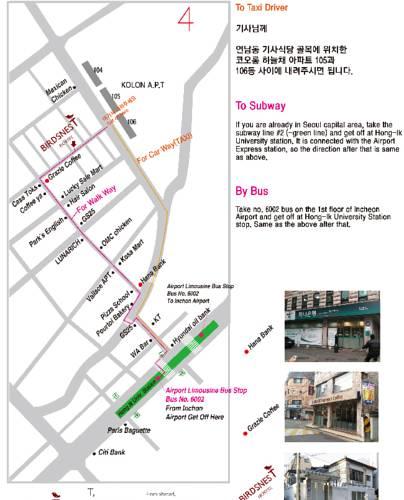 Хостел Birdsnest находится в 1,7 км от станции метро Shinchon (линия 2) и в 2,3 км от железнодорожного вокзала Синчон. Он также расположен в 1,8 км от университета Хонгик, в 3,2 км от улицы Университета Синчон Ихва и в 6,1 км от мэрии Сеула. До аэропорта Инчеон - 53 км.