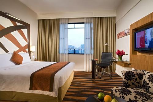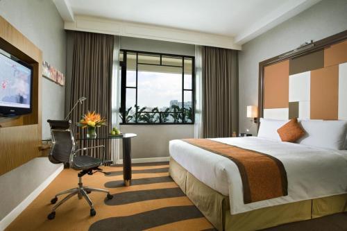 Номера в отеле Swissotel Merchant Court обставлены современной мебелью и украшены очень большими окнами с прекрасным видом на бассейн, реку или город. Для комфорта гостей в них предусмотрены бесплатные удобства для приготовления чая/кофе, ковровое покрытие и отделанные мрамором ванные комнаты.