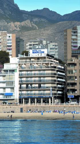 Отель Marconi расположен на набережной, напротив пляжа Пониенте в Бенидорме. Из кафе открывается отличный вид на море, а с террасы на крыше с бассейном можно полюбоваться панорамным видом на город и залив.