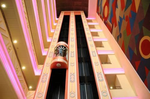 Во всех номерах есть кондиционер и балкон. Другие удобства включают кафе в виде лодки и панорамные лифты.