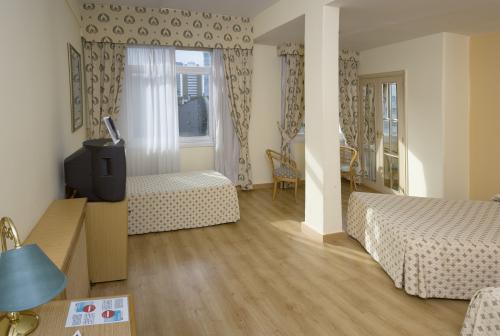 Отель Riazor расположен на берегу моря, рядом с пляжем Риазор Ла-Коруньи. Он находится в 5 минутах ходьбы от стадиона "Риазор" команды "Депортиво Ла-Корунья". В номерах есть бесплатный Wi-Fi и спутниковое телевидение.