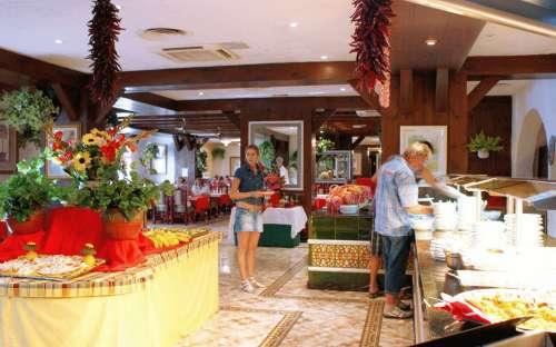 В главном ресторане сервируют "шведский стол". Напитки и легкие закуски можно заказать в снэк-баре или баре у бассейна.