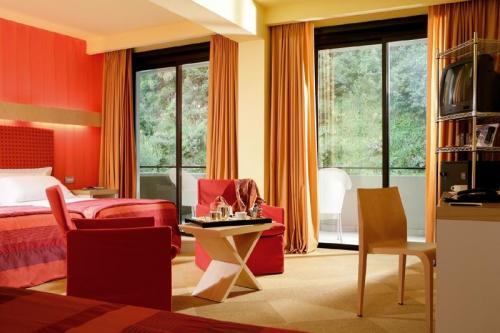 ванная комната c ванной или душем, фен, телефон, ТВ, Wi-Fi, сейф, мини-бар, кондиционер, балкон. В номерах Standard вид на море или сад. Номера Executive расположены на верхних этажах и имеют вид на море, гостям этих номеров предоставляется доступ в VIP-зону на верхнем этаже с бассейном.