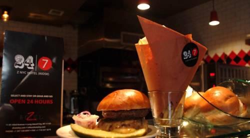 В ресторане отеля Z гостям предлагаются классические блюда американской кухни. Ресторан работает весь день. Гости могут полюбоваться видом на закат над Нью-Йорком с крыши бара с бокалом вина или коктейлем.