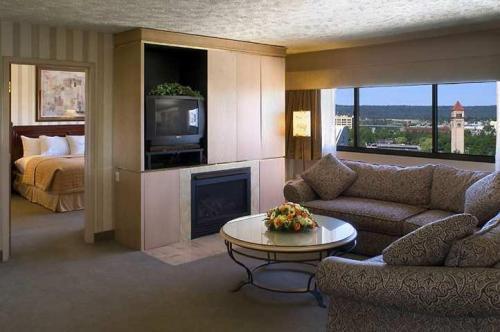 Гостям этого отеля, расположенного возле Выставочного центра в центре города Спокан (штат Вашингтон) на берегу реки Спокан, предлагаются такие удобные услуги, как бесплатный трансфер до аэропорта.