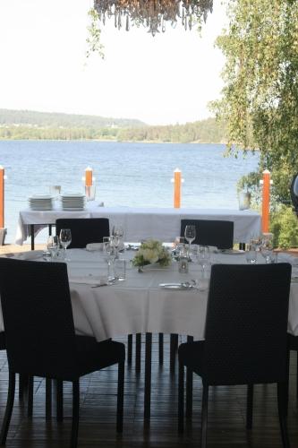 Ресторан отеля Hallsnas предлагает разнообразное меню, состоящее как из традиционных шведских блюд, так и более инновационных предложений. Блюда готовятся из высококачественных ингредиентов в основном местных производителей. Гости могут насладиться трапезой в зимнем саду, который предлагает панорамный вид на озеро.