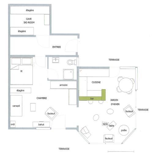 В шале имеется спальня, гостиная, современная кухня со столовой, ванная комната и терраса. В гостиной есть камин, спутниковое телевидение, CD- и DVD-плееры, видео игры и система hi-fi. Предоставляется также помещение для хранения лыж.
