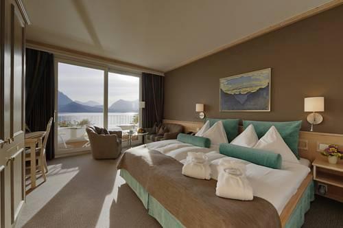 Все номера оборудованы балконом, а из большинства номеров открывается панорамный вид на озеро Тун и горы.